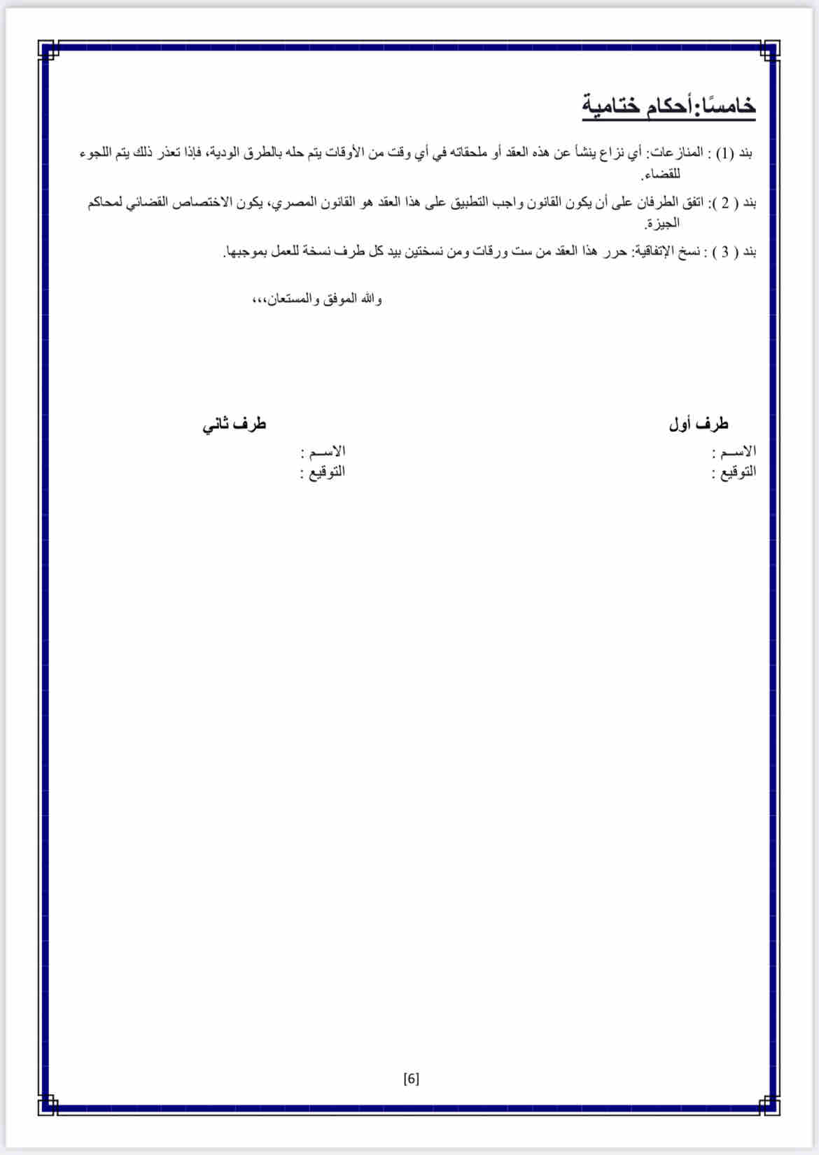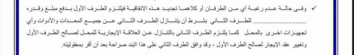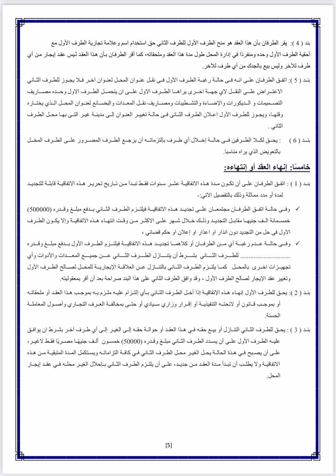 - ننصح بوضع بند يمع الطرف الاول من الموافقة على افتتاح محل بذات النشاط فى المنطقة التى يقع بها المحل الخاص بك ، حتى لا تفقد  جزء من مبيعاتك .