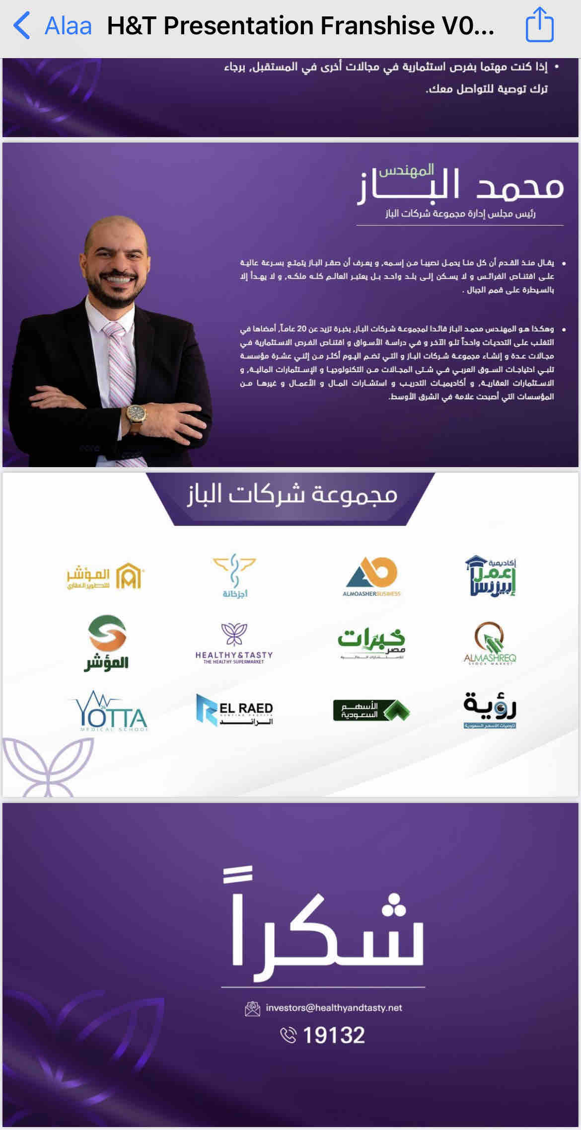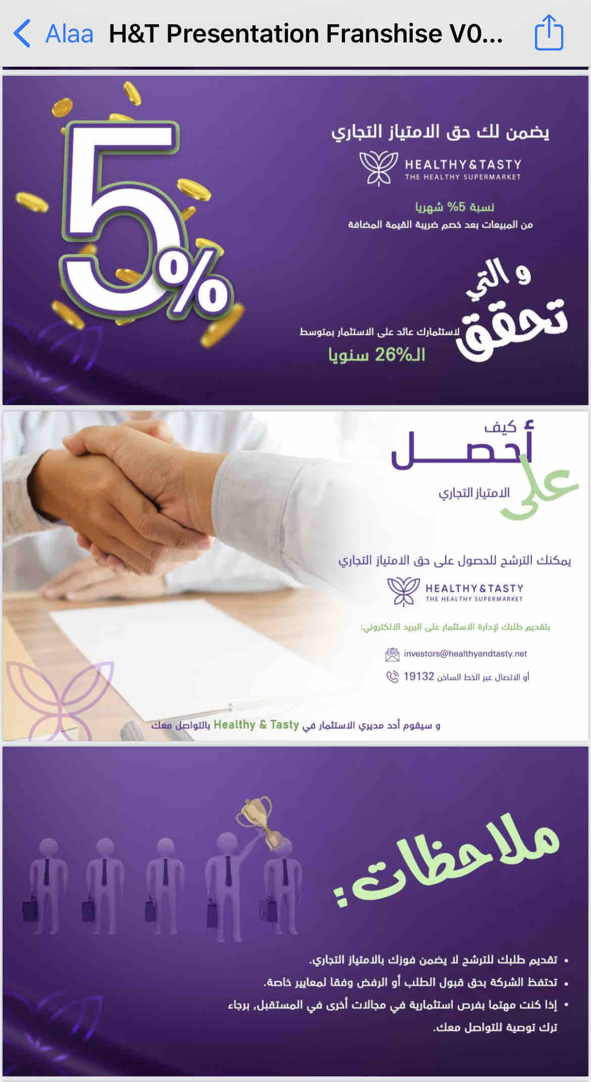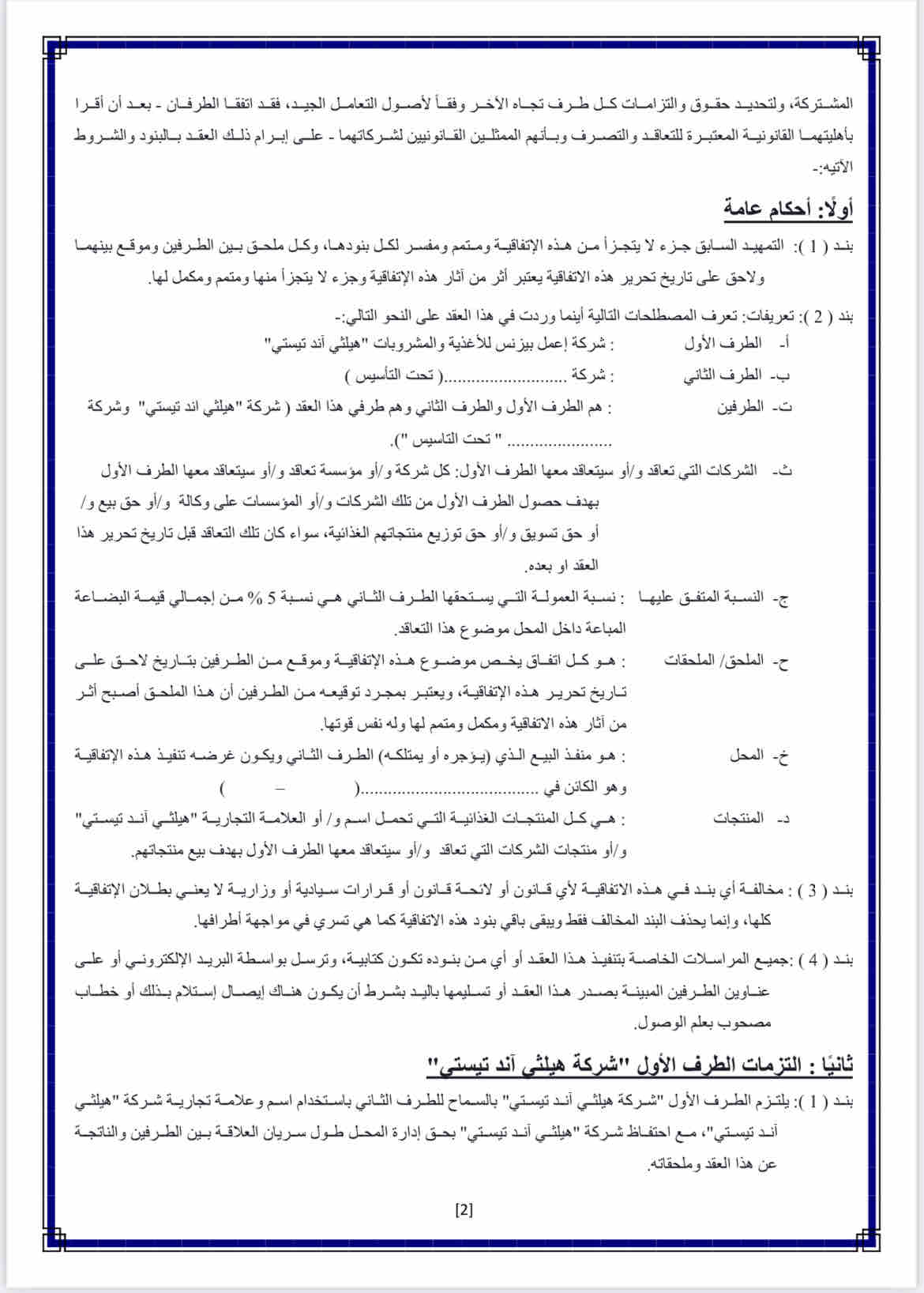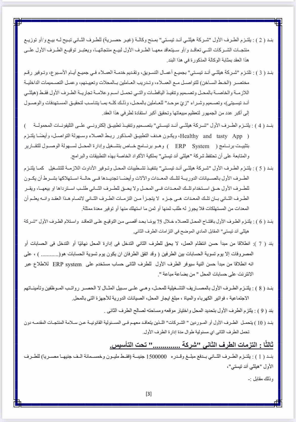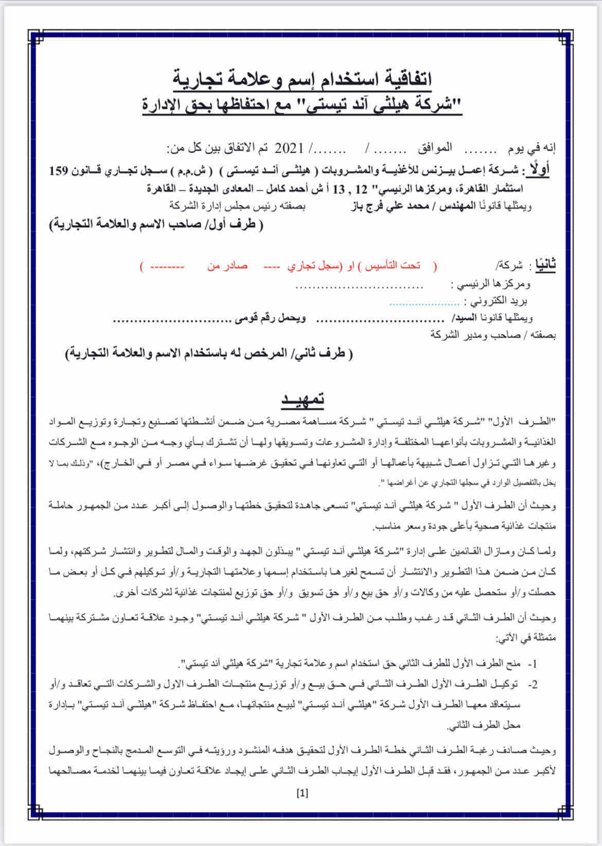 معروض عليا شراكة فى سلسلة محلات تجارية لبيع المنتجات الغذائية الصحية هيلثى اند تيستى عن طريق نظام الفرنشايز و محتاج محامى يراجع العقد و السجل التجارى للشركة