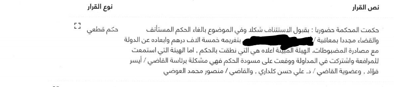 حصلت على حكم في محكمة الاستئناف غرامة خمسة الاف...