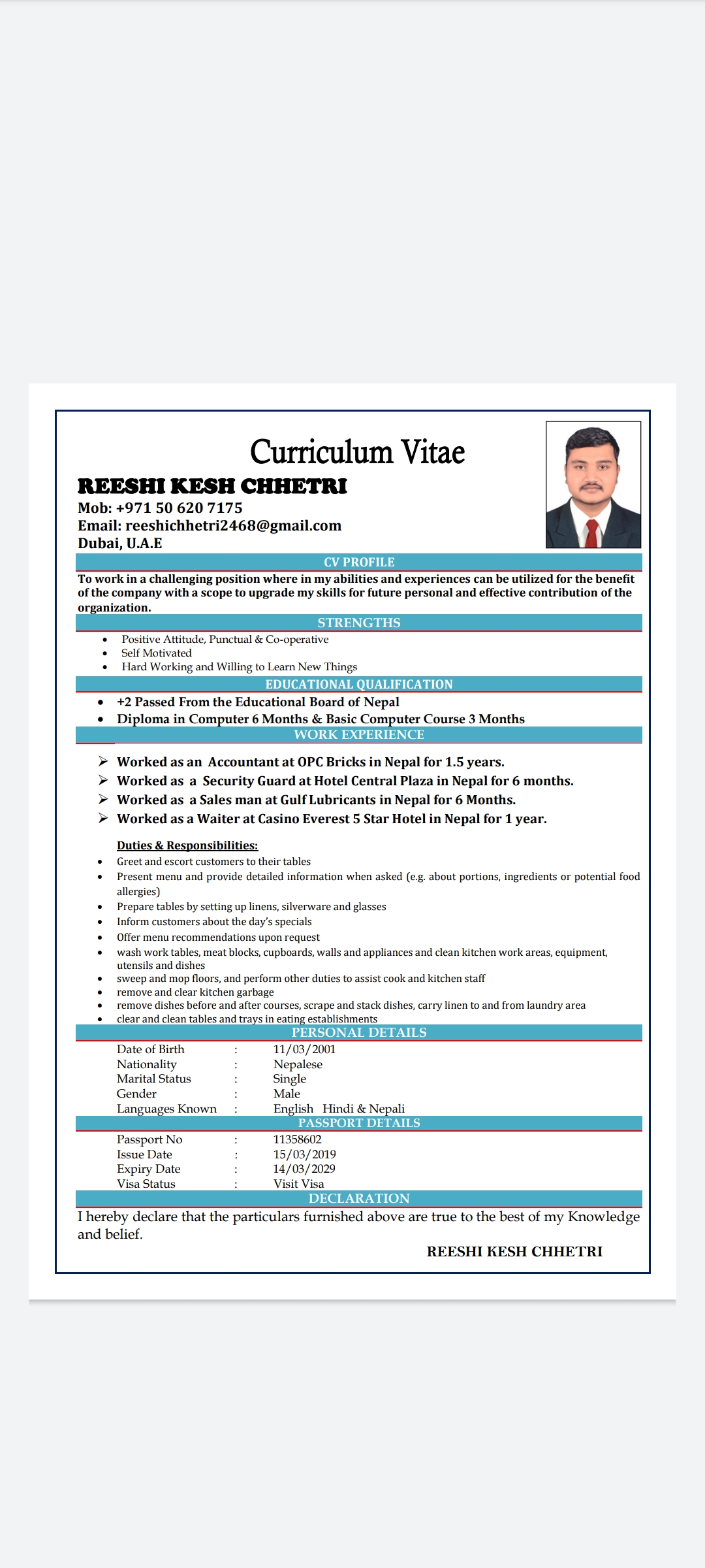 I'm looking for a job in UAE , for cashier and waiter.