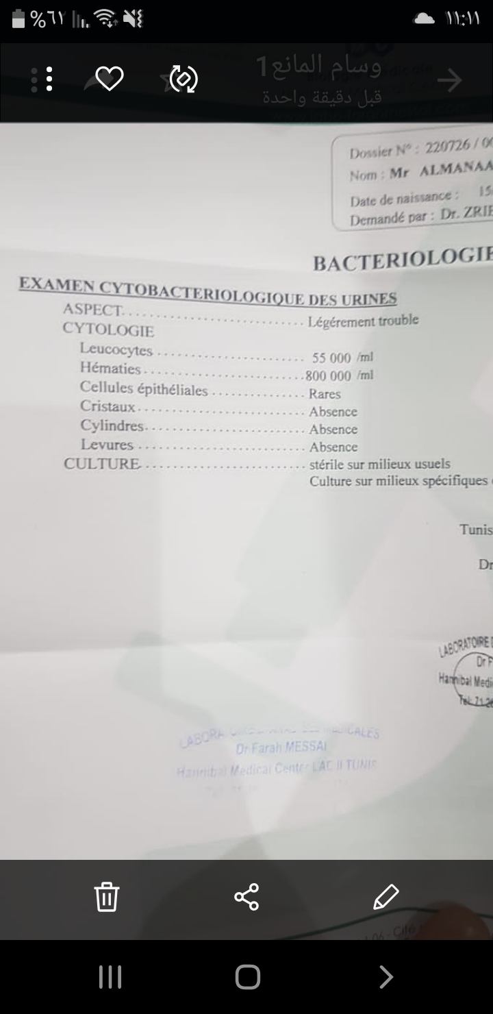 تم إجراء المنظر وفى انتظار نتيجة العينه