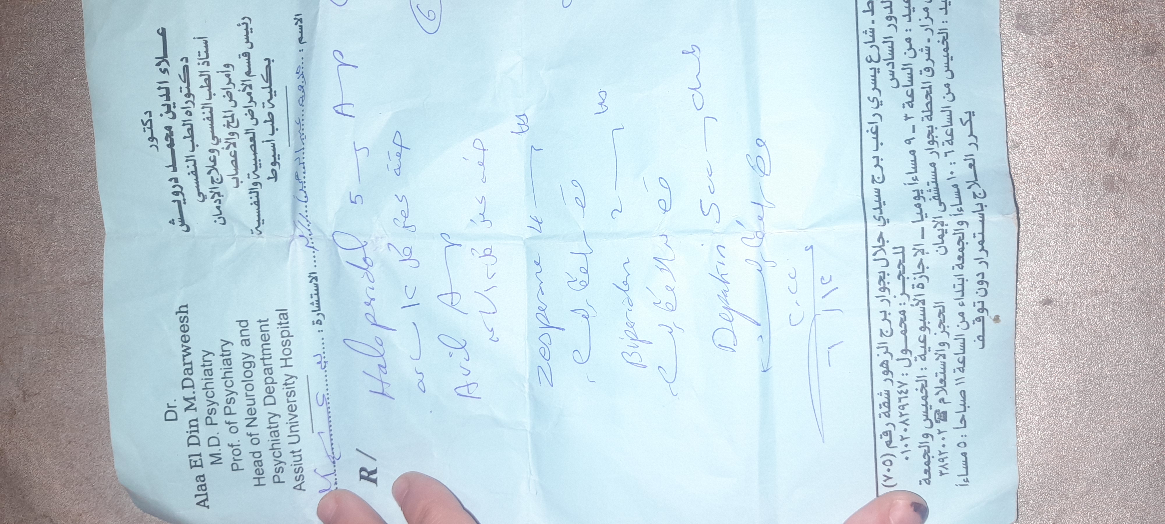إن الروشتة العلاجية تحتوي على مجموعة من الأدوية النفسية التي تعمل على تهدئة المريض وعليك استعمالها وفقا للوصف الطبي فقط.